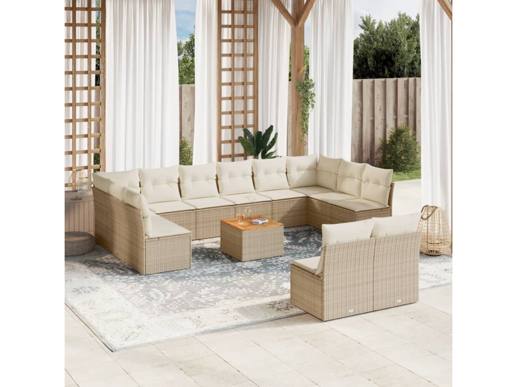 13dílná zahradní sedací souprava s poduškami béžová polyratan 3256226