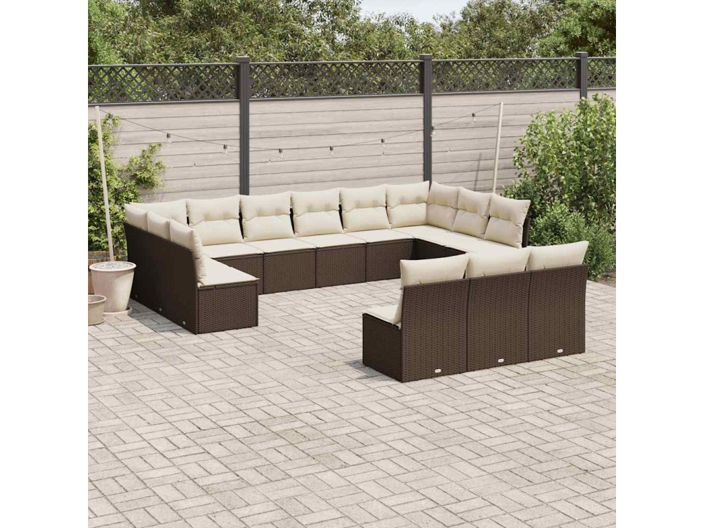 13dílná zahradní sedací souprava s poduškami hnědá polyratan 3218393
