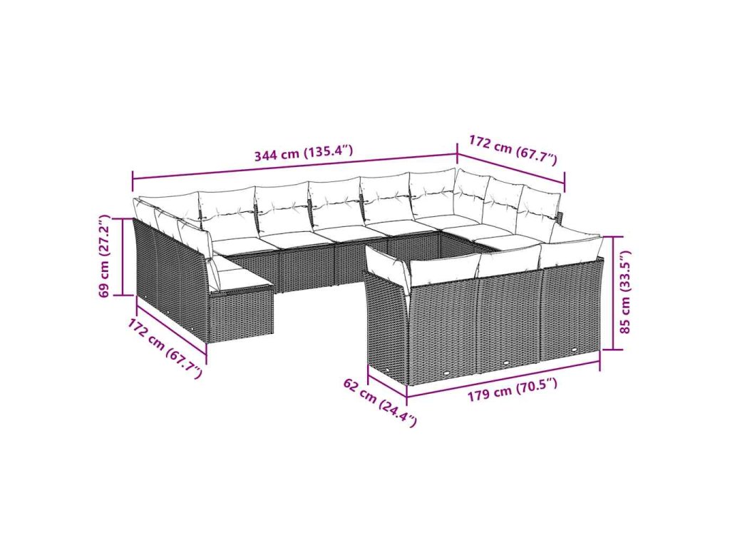 13dílná zahradní sedací souprava s poduškami hnědá polyratan 3218453