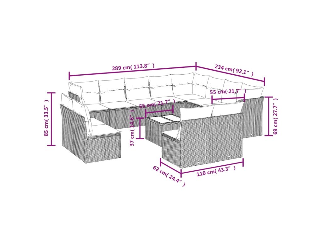 13dílná zahradní sedací souprava s poduškami hnědá polyratan 3218483