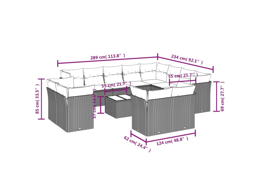13dílná zahradní sedací souprava s poduškami šedá polyratan 3218540