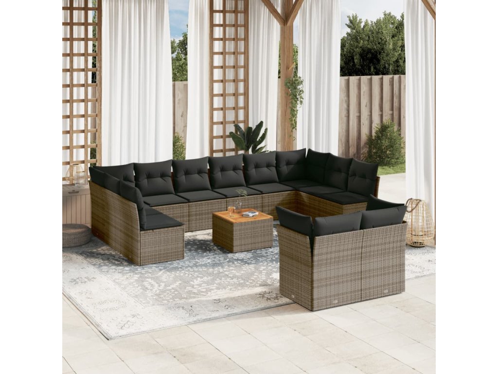 13dílná zahradní sedací souprava s poduškami šedá polyratan 3223918