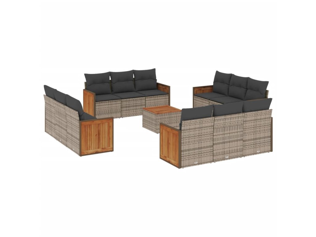 13dílná zahradní sedací souprava s poduškami šedá polyratan 3227523