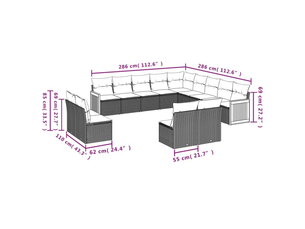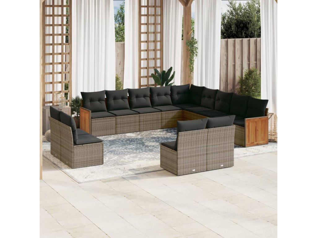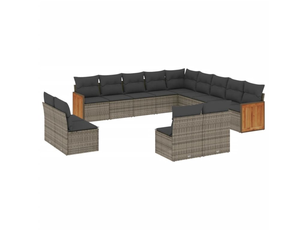 13dílná zahradní sedací souprava s poduškami šedá polyratan 3228167