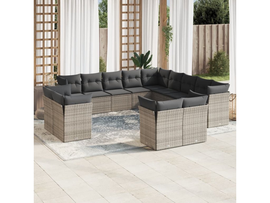13dílná zahradní sedací souprava s poduškami šedá polyratan 3250389