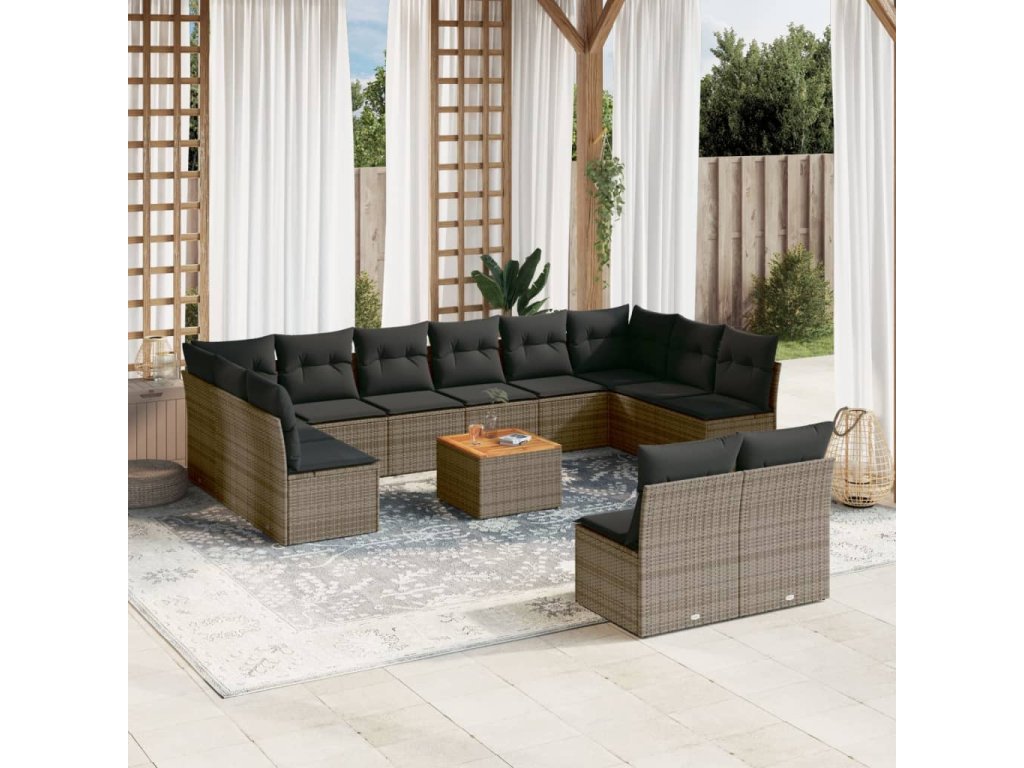 13dílná zahradní sedací souprava s poduškami šedá polyratan 3256228