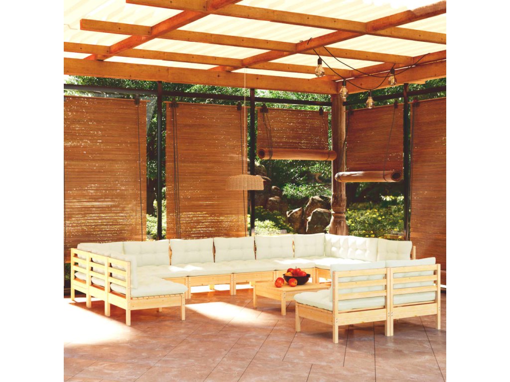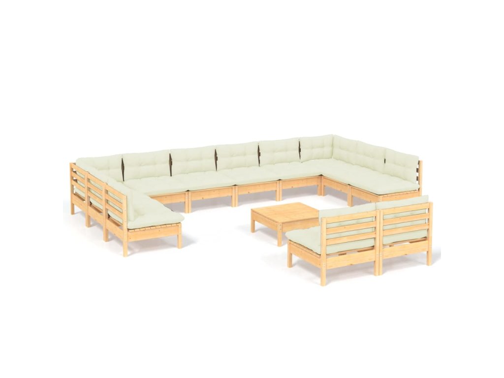 13dílná zahradní souprava krémové podušky masivní borovice 3097229