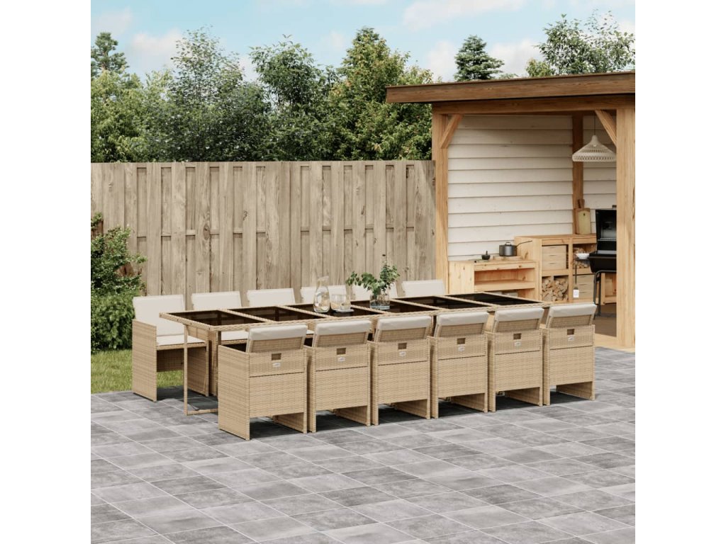 13dílný zahradní jídelní set s poduškami béžový polyratan 3210586
