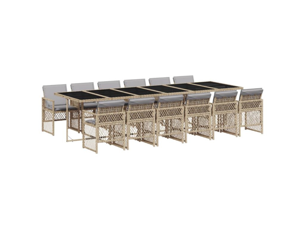 13dílný zahradní jídelní set s poduškami béžový polyratan 3210768