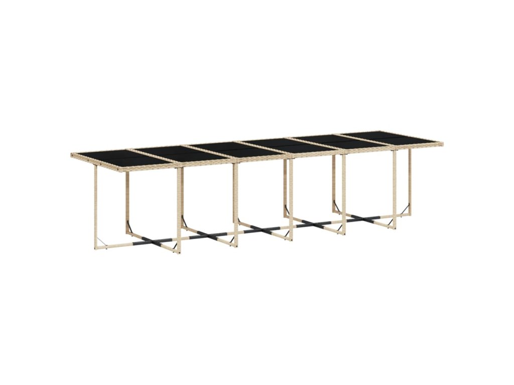 - Skleněná deska stolu: Deska venkovního stolu je zhotovena ze silného a odolného tvrzeného skla, takže ji snadno očistíte vlhkým hadříkem a zároveň do vašeho venkovního prostoru vnese nádech elegance.