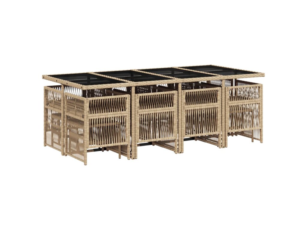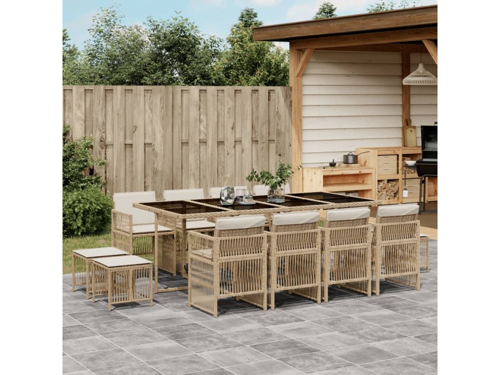 13dílný zahradní jídelní set s poduškami béžový polyratan 3210982