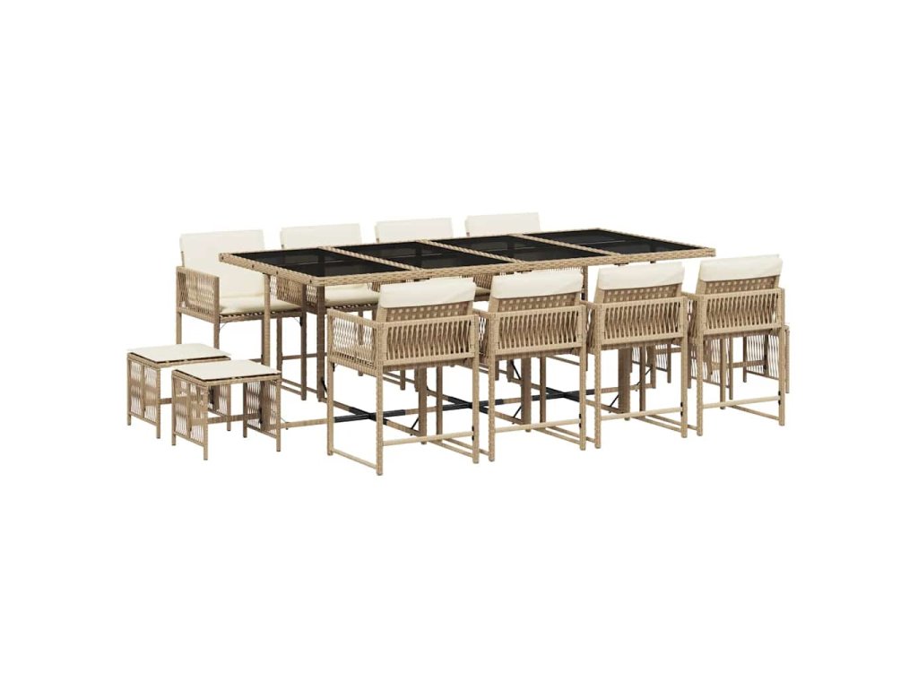 13dílný zahradní jídelní set s poduškami béžový polyratan 3211522