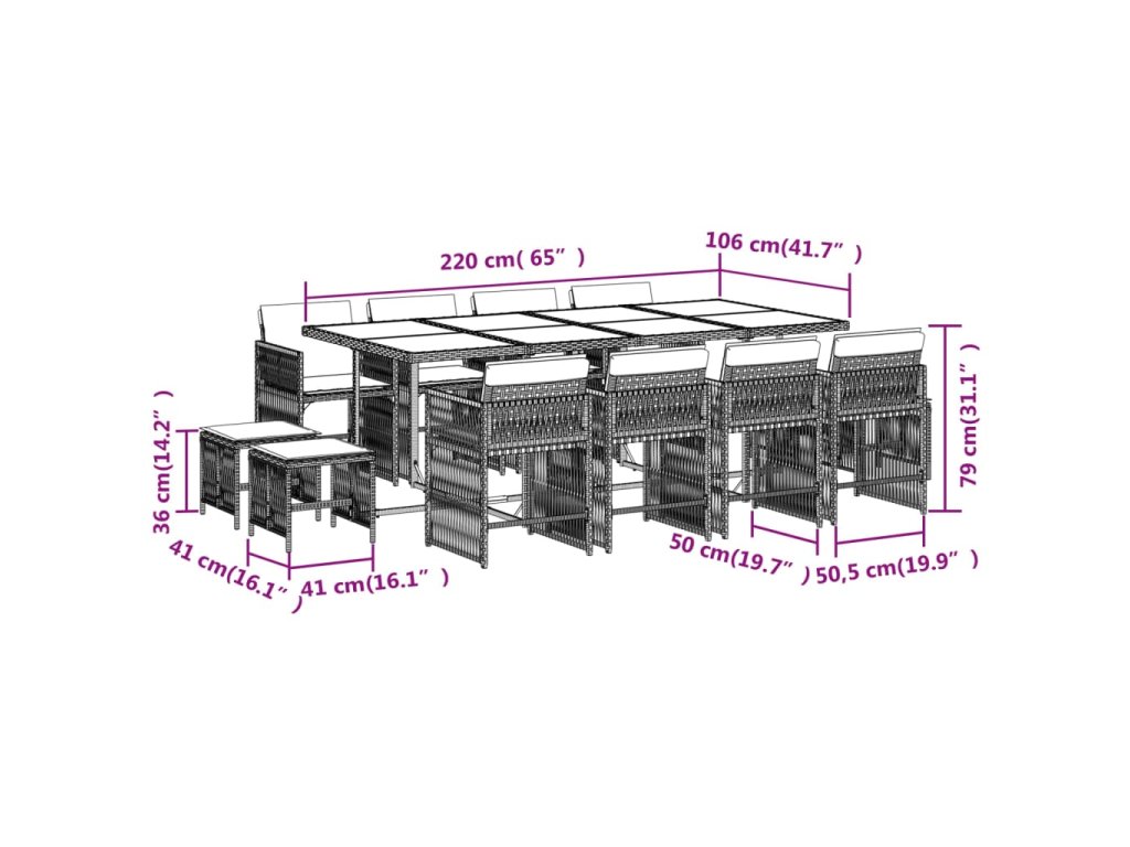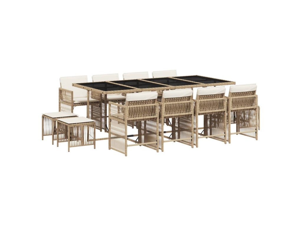 13dílný zahradní jídelní set s poduškami béžový polyratan 3211702