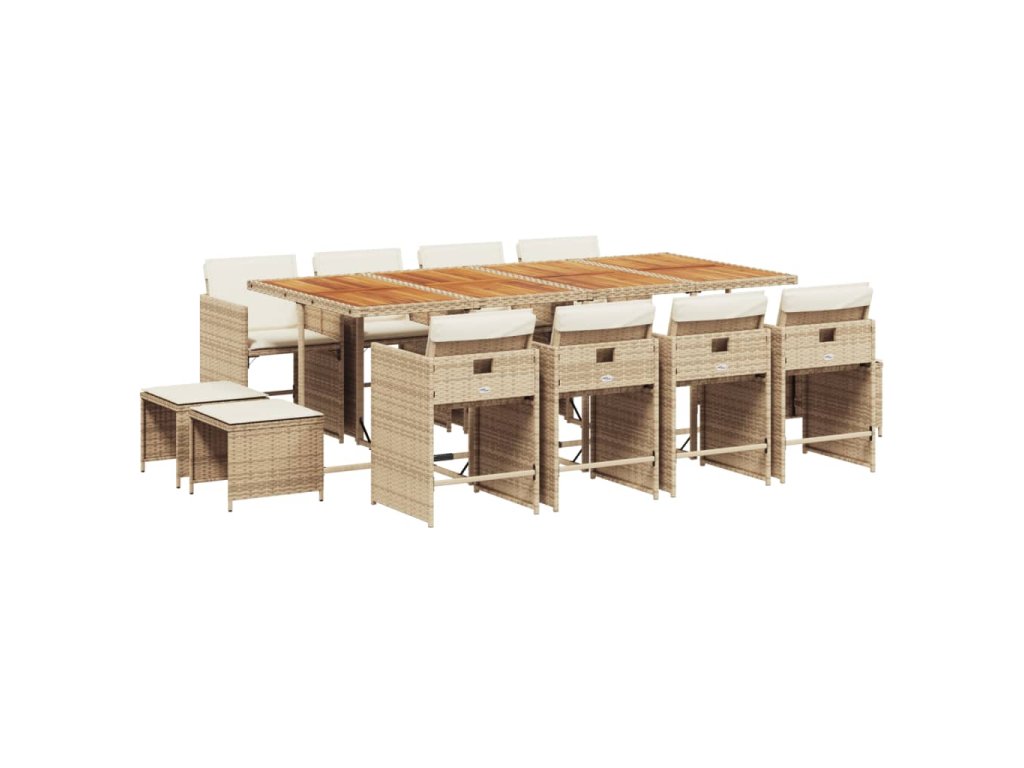 13dílný zahradní jídelní set s poduškami béžový polyratan 3277935