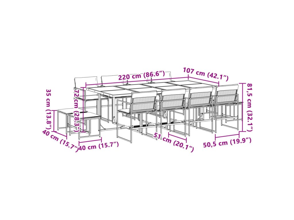 - Robustní a stabilní rám: Ocelový rám s práškovým nástřikem zajišťuje, že zahradní nábytek je pevný a stabilní pro každodenní venkovní použití.