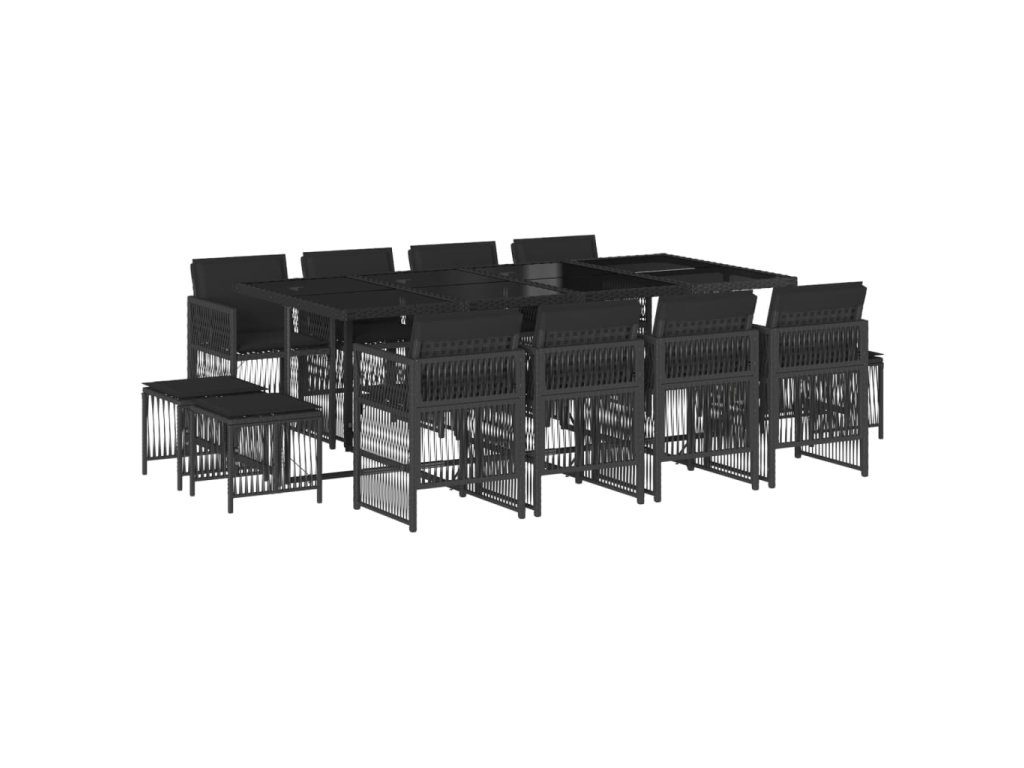 13dílný zahradní jídelní set s poduškami černý polyratan 3210979