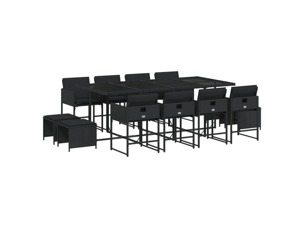 13dílný zahradní jídelní set s poduškami černý polyratan 3211339