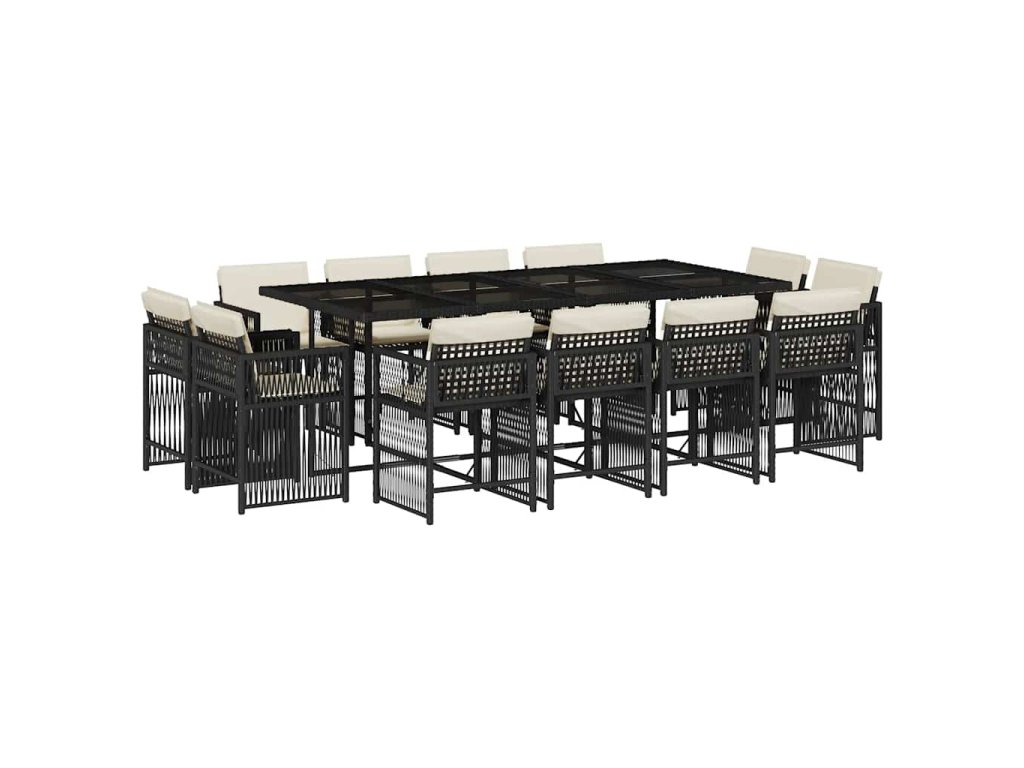 13dílný zahradní jídelní set s poduškami černý polyratan 3211758