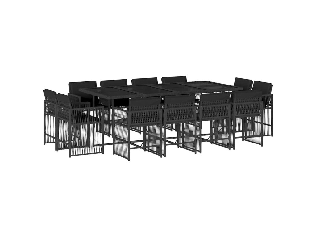 13dílný zahradní jídelní set s poduškami černý polyratan 3211759