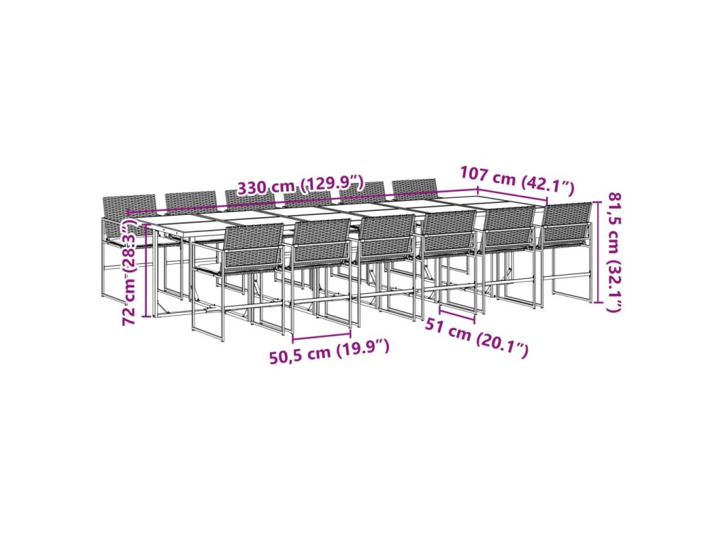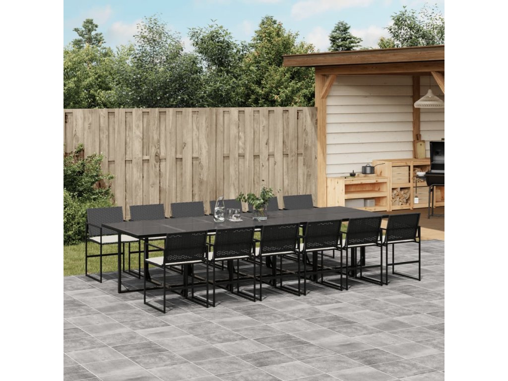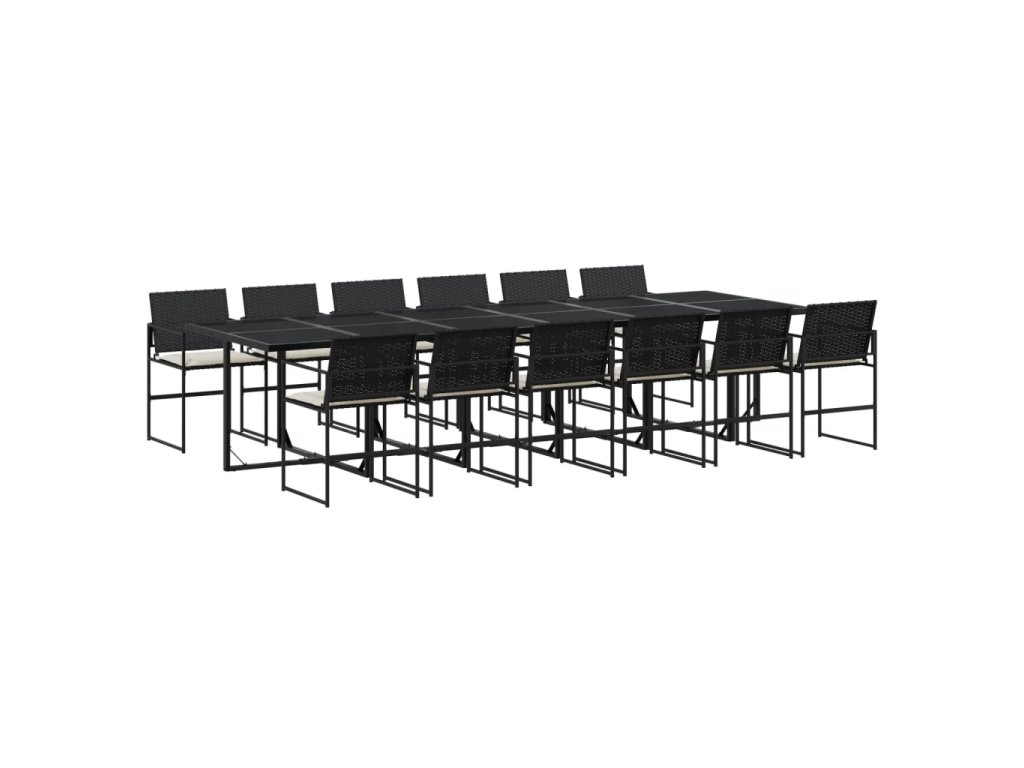 13dílný zahradní jídelní set s poduškami černý polyratan 3295062