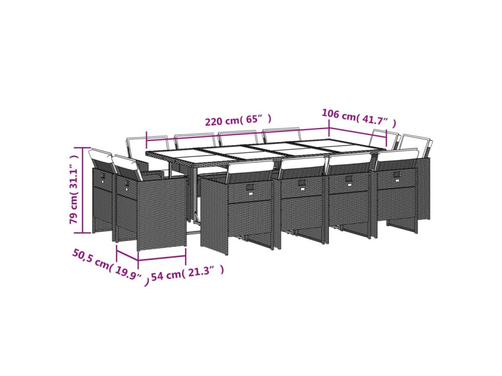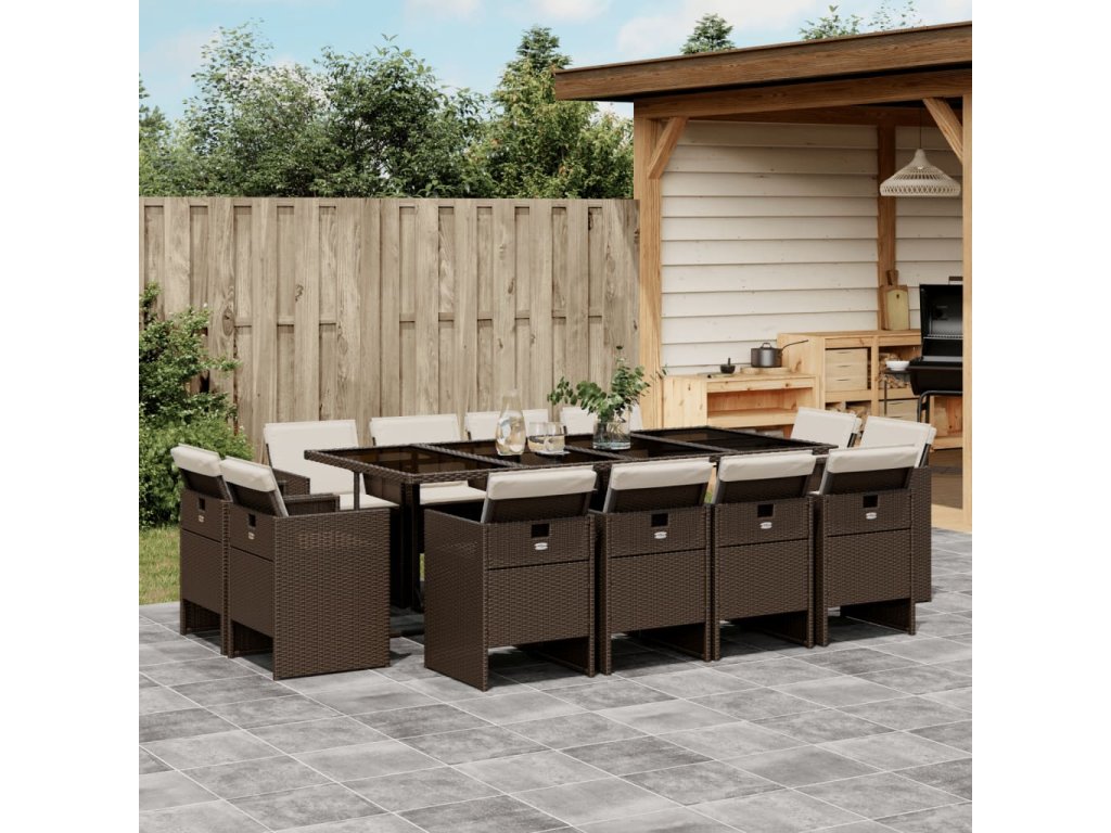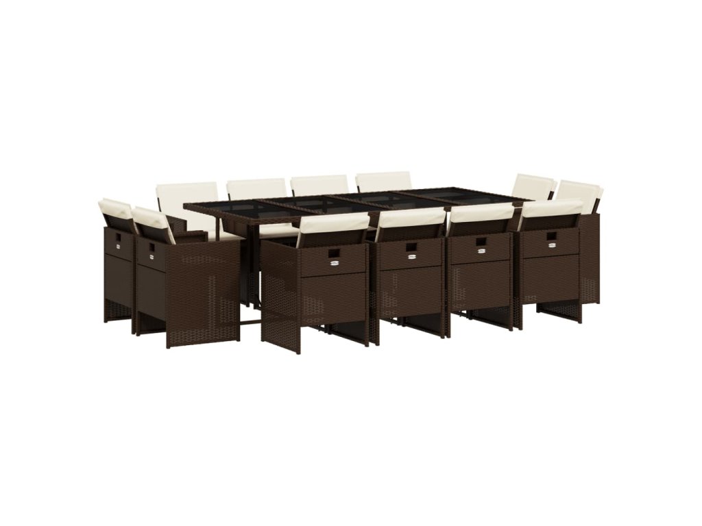13dílný zahradní jídelní set s poduškami hnědý polyratan 3210681