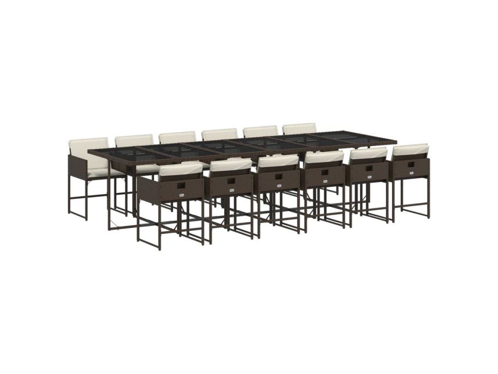 13dílný zahradní jídelní set s poduškami hnědý polyratan 3211305