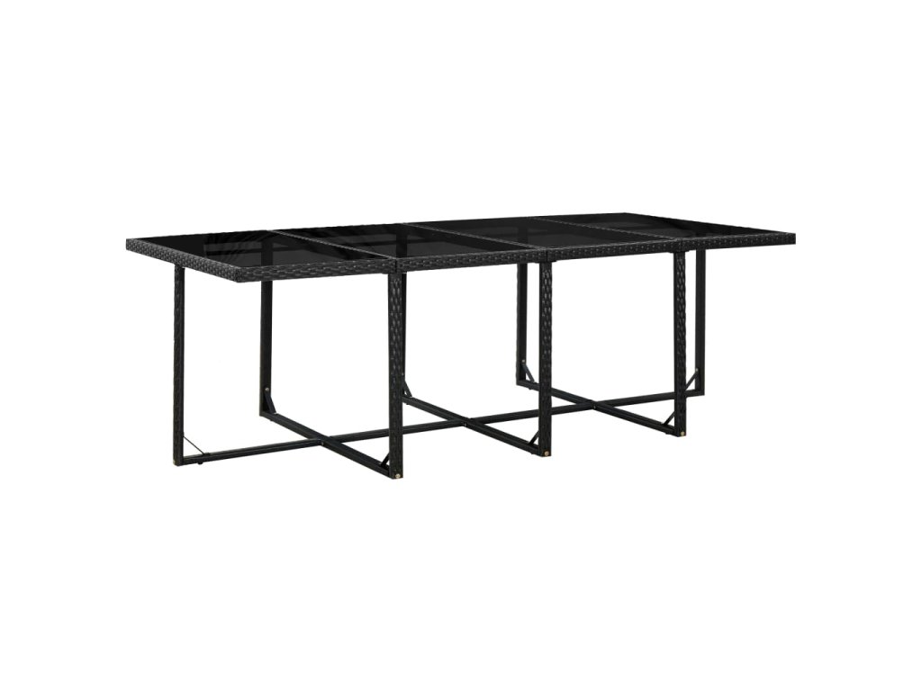 Tento ratanový jídelní set v elegantním současném designu bude skvělou volbou pro stolování na čerstvém vzduchu nebo relaxaci na zahradě. Ocelové rámy s práškovým nástřikem dodávají stolu i židlím pevnost a robustnost a díky lehké konstrukci se dají všechny kusy snadno přesouvat. Protože je vyroben z PE ratanu, odolného vůči vodě a povětrnostním vlivům, dá se jídelní set snadno čistit. Skleněná stolní deska se dá rovněž snadno čistit otřením vlhkým hadříkem.