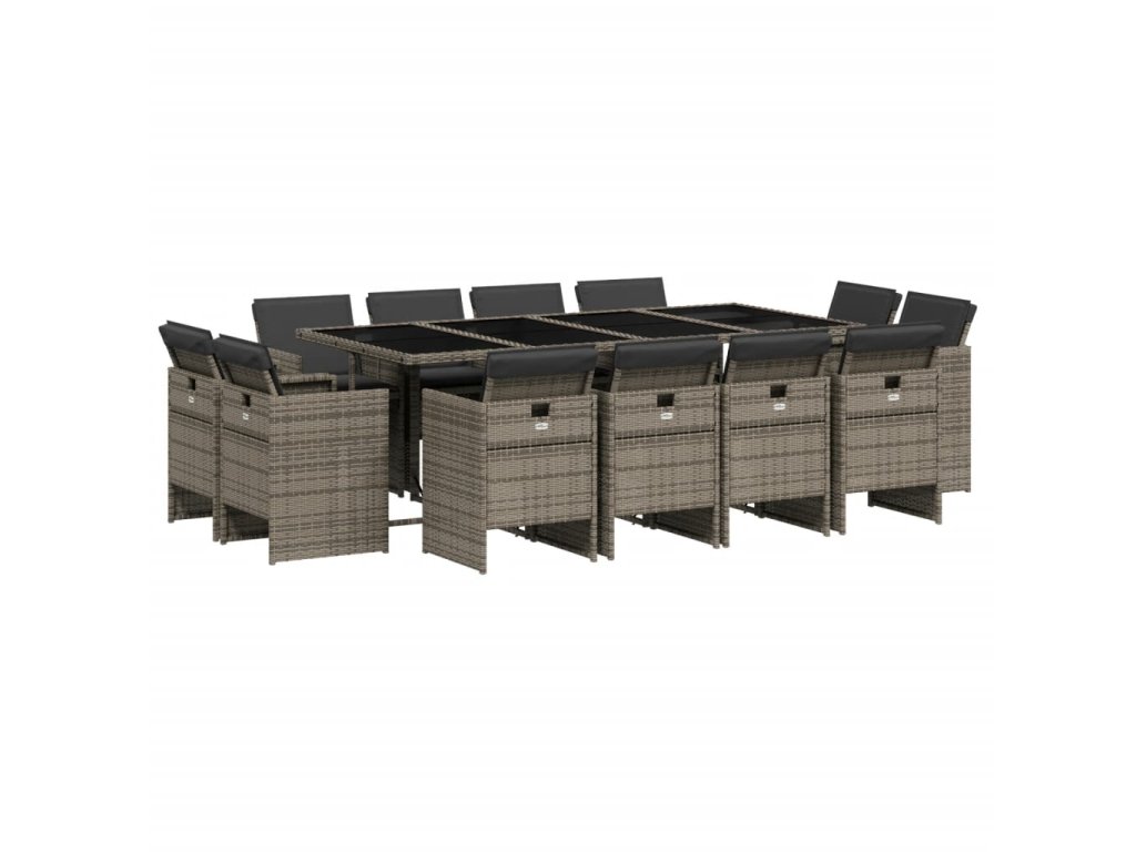 13dílný zahradní jídelní set s poduškami šedý polyratan 3210680