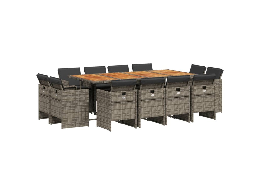 13dílný zahradní jídelní set s poduškami šedý polyratan 3210686