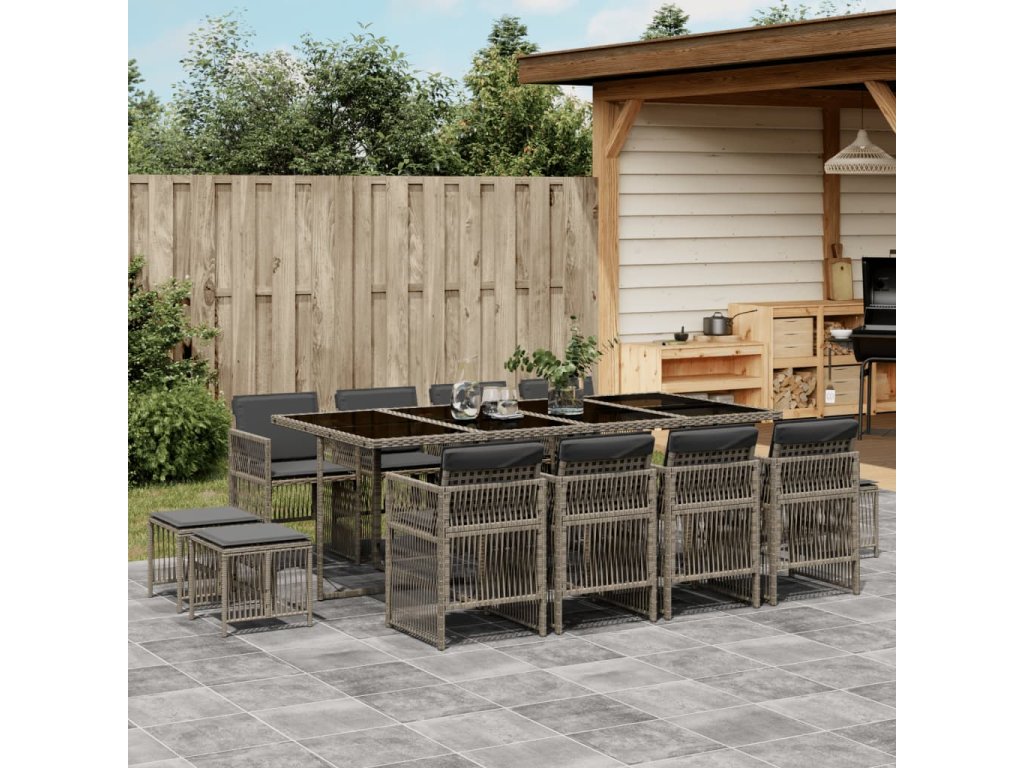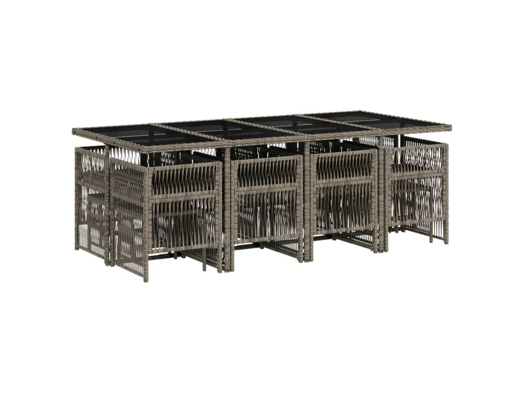 13dílný zahradní jídelní set s poduškami šedý polyratan 3210980