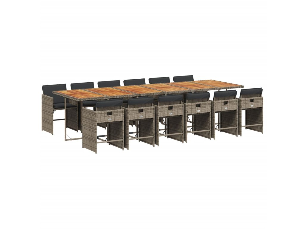 13dílný zahradní jídelní set s poduškami šedý polyratan 3211130