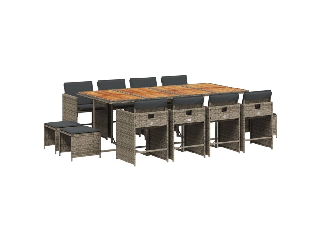 13dílný zahradní jídelní set s poduškami šedý polyratan 3211166