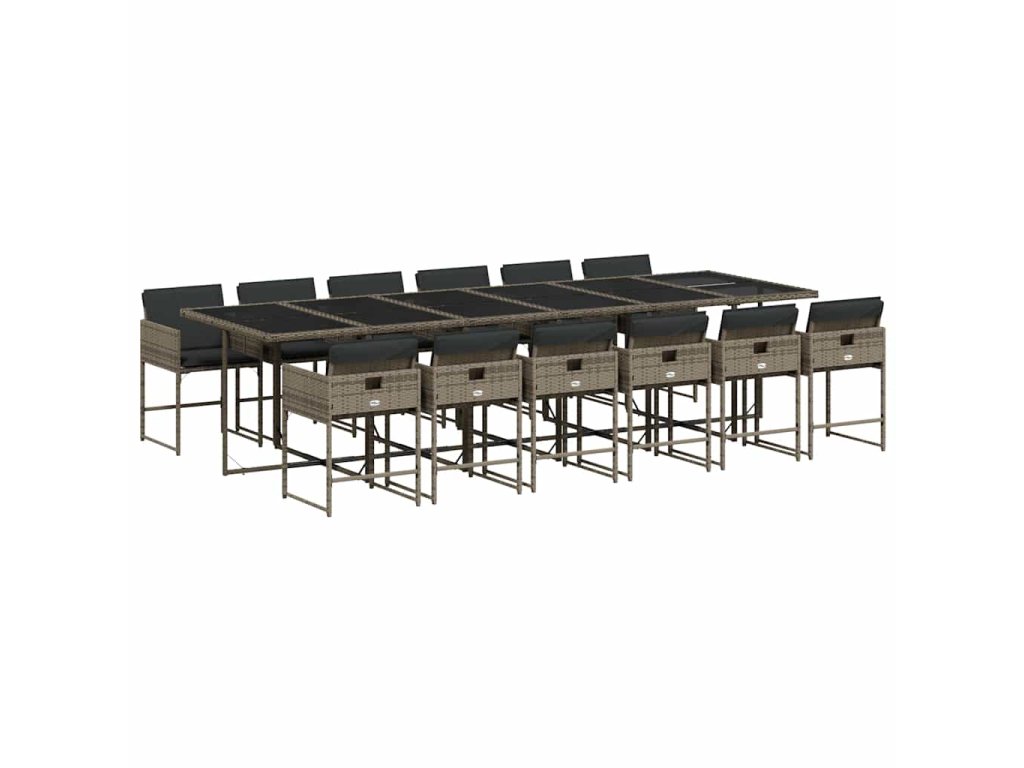 13dílný zahradní jídelní set s poduškami šedý polyratan 3211304