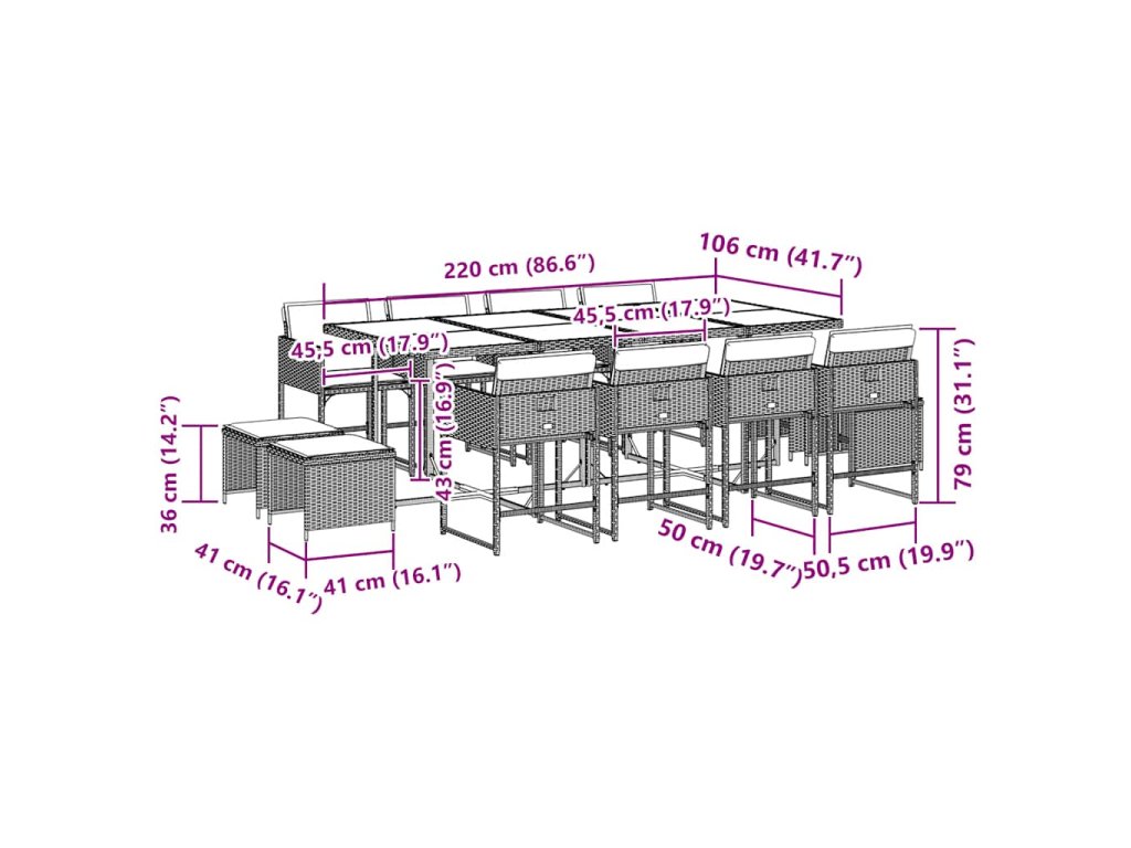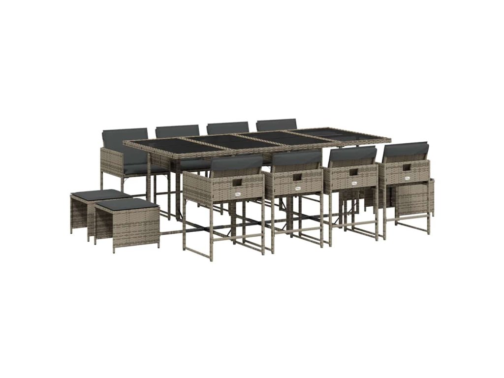 13dílný zahradní jídelní set s poduškami šedý polyratan 3211340