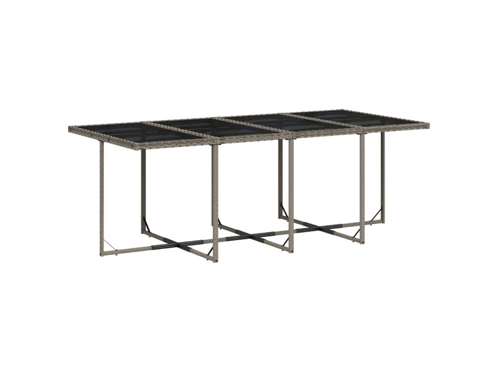 - Skleněná deska stolu: Deska venkovního stolu je zhotovena ze silného a odolného tvrzeného skla, takže ji snadno očistíte vlhkým hadříkem a zároveň do vašeho venkovního prostoru vnese nádech elegance.