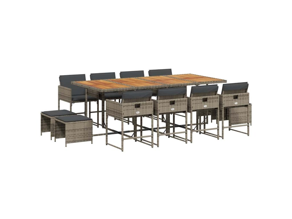 13dílný zahradní jídelní set s poduškami šedý polyratan 3211346