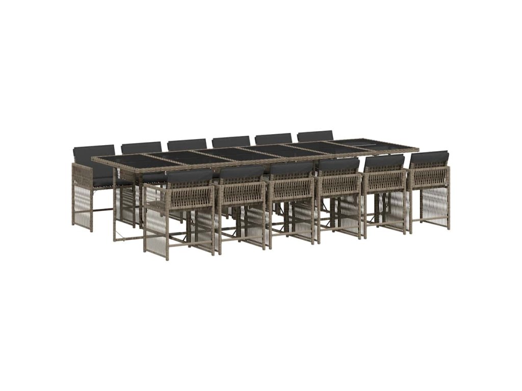 13dílný zahradní jídelní set s poduškami šedý polyratan 3211664