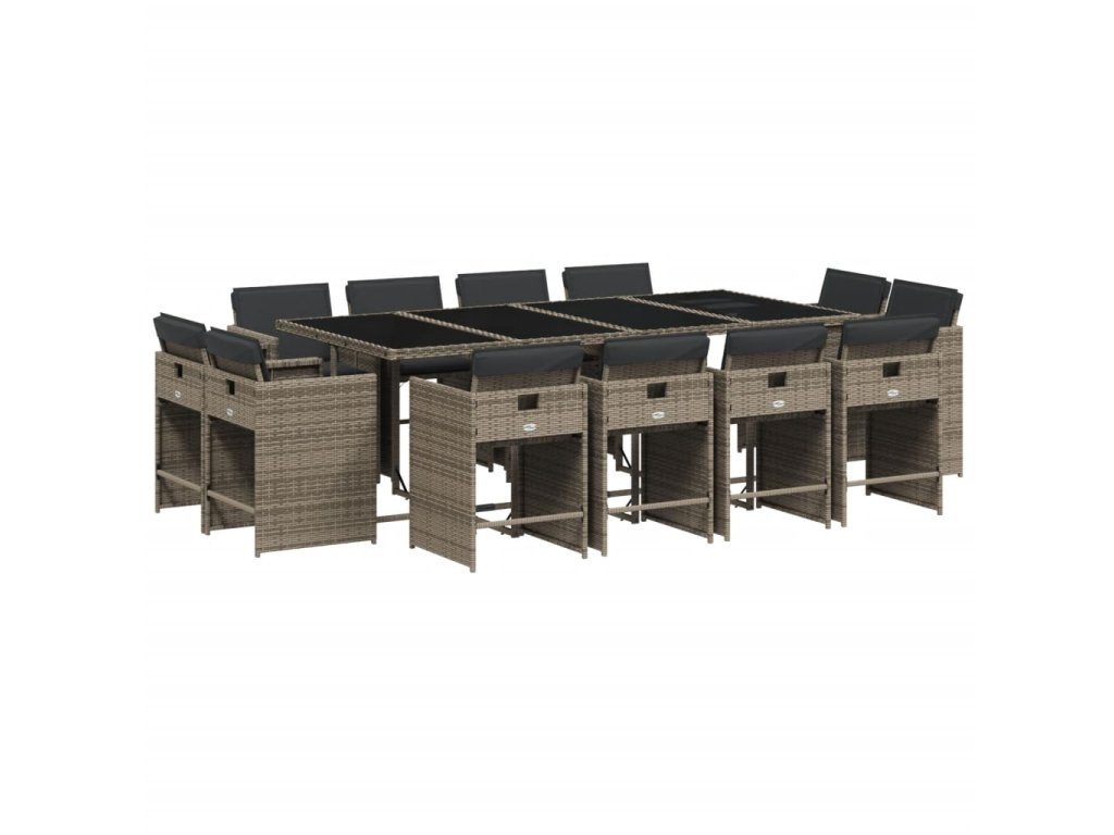13dílný zahradní jídelní set s poduškami šedý polyratan 3277987