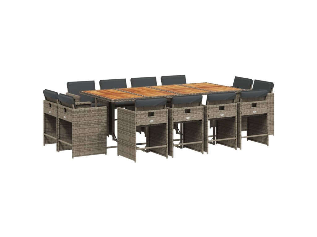 13dílný zahradní jídelní set s poduškami šedý polyratan 3277993