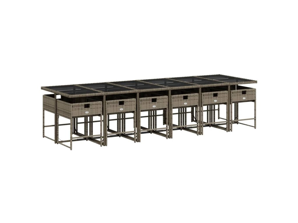 13dílný zahradní jídelní set s poduškami šedý polyratan 3278071