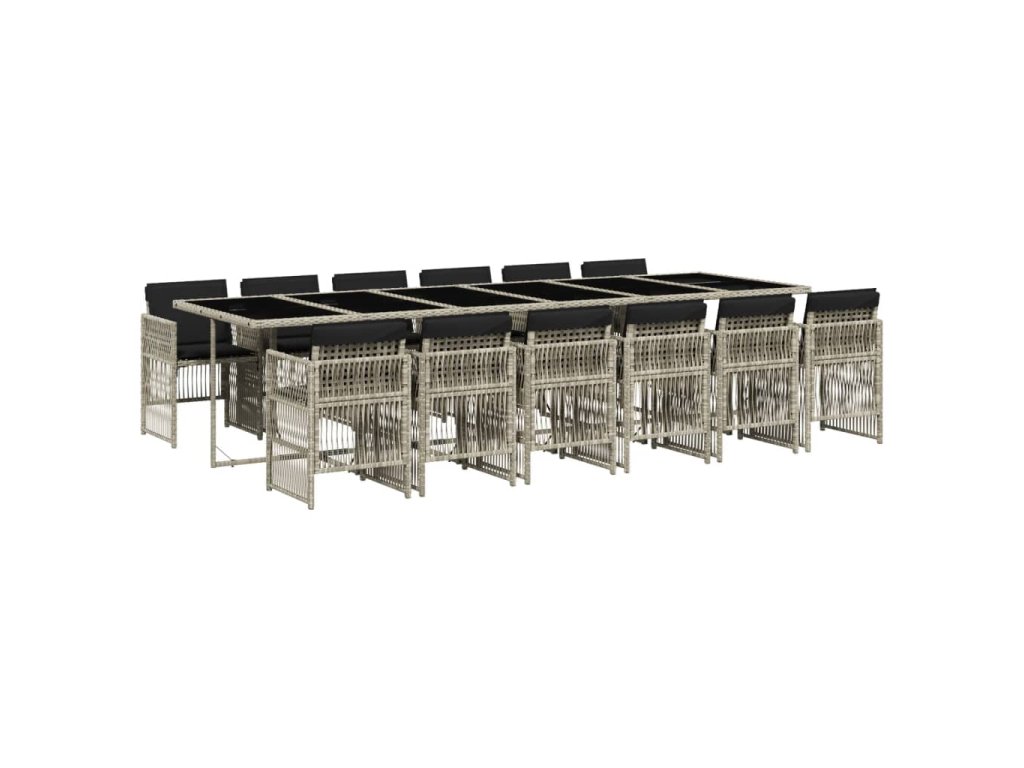 13dílný zahradní jídelní set s poduškami světle šedý polyratan 3210947