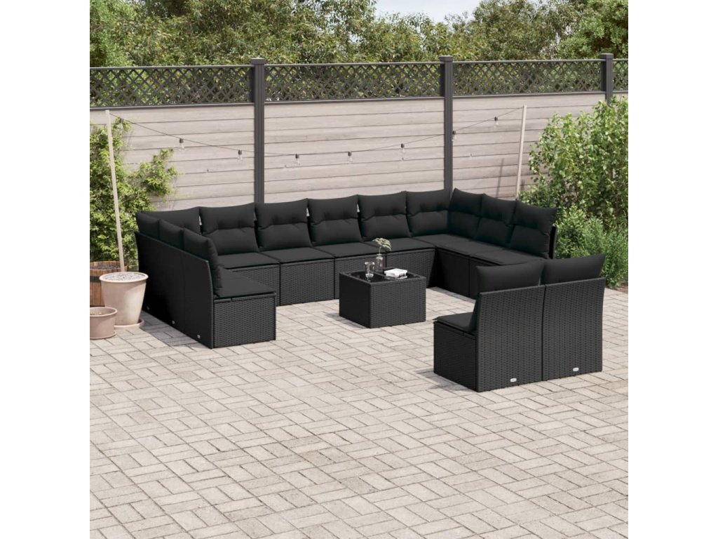 13dílný zahradní sedací souprava s poduškami černý polyratan 3218375