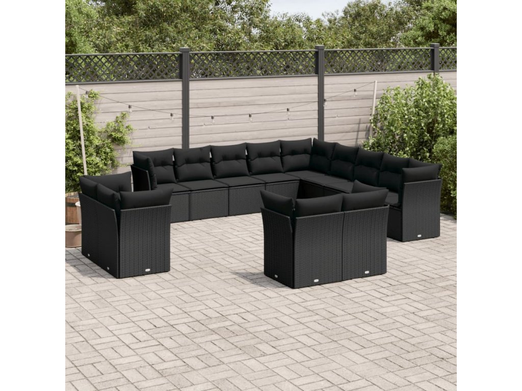 13dílný zahradní sedací souprava s poduškami černý polyratan 3218545