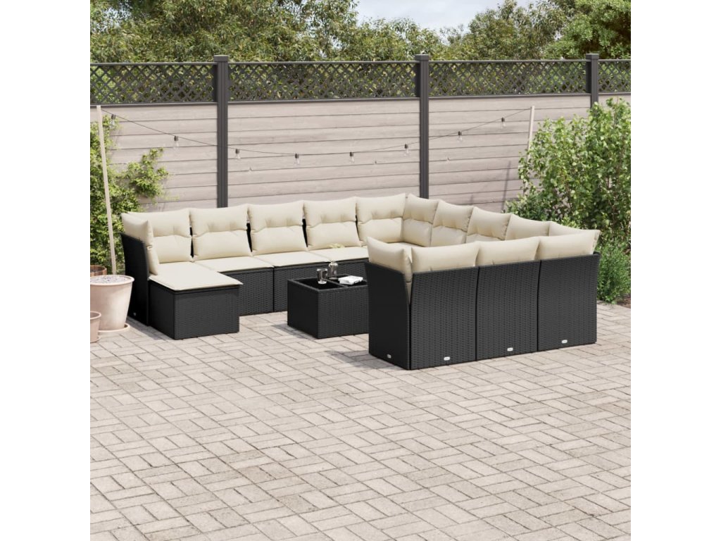 13dílný zahradní sedací souprava s poduškami černý polyratan 3218636