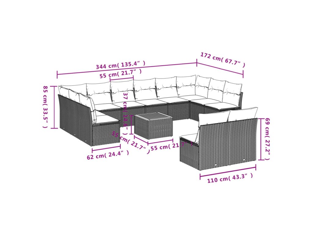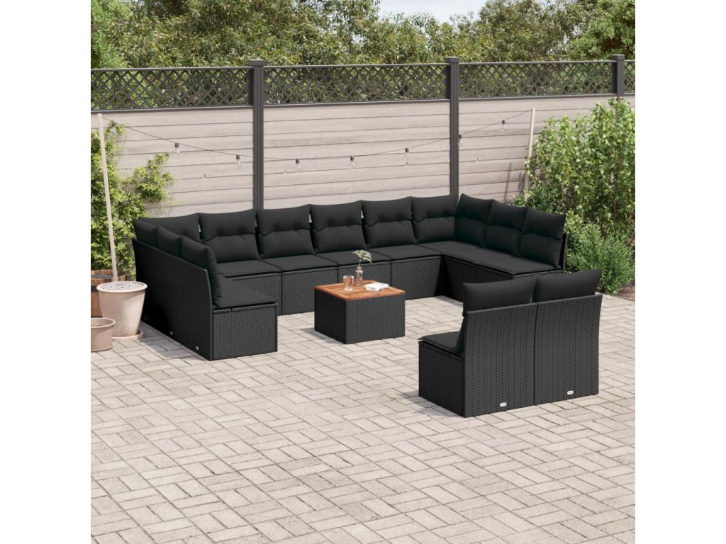 13dílný zahradní sedací souprava s poduškami černý polyratan 3223892