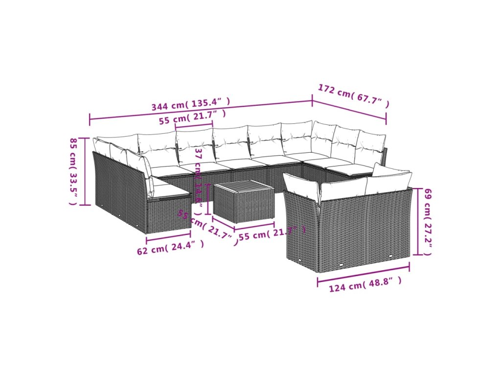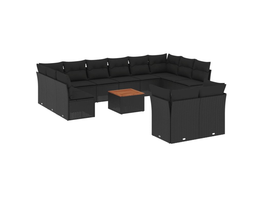 13dílný zahradní sedací souprava s poduškami černý polyratan 3223913