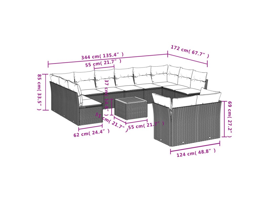 Tato zahradní sedací souprava je dokonalým doplňkem vaší zahrady, terasy nebo dvorku a poskytne vám pohodlné a příjemné místo, kde si můžete povídat s rodinou a přáteli nebo jen tak odpočívat a užívat si pobyt venku.