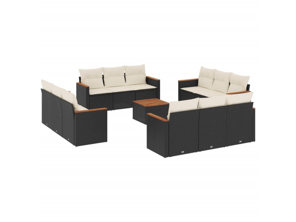 13dílný zahradní sedací souprava s poduškami černý polyratan 3225839