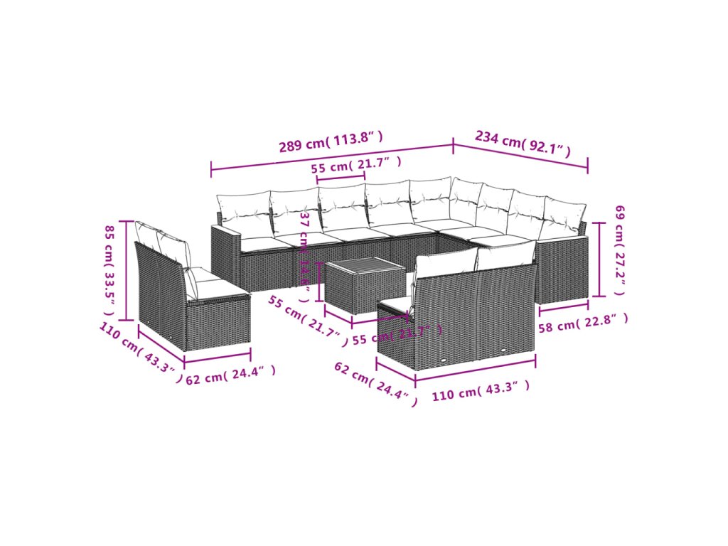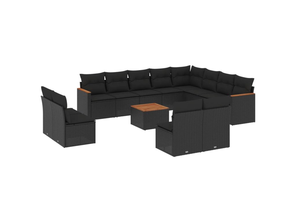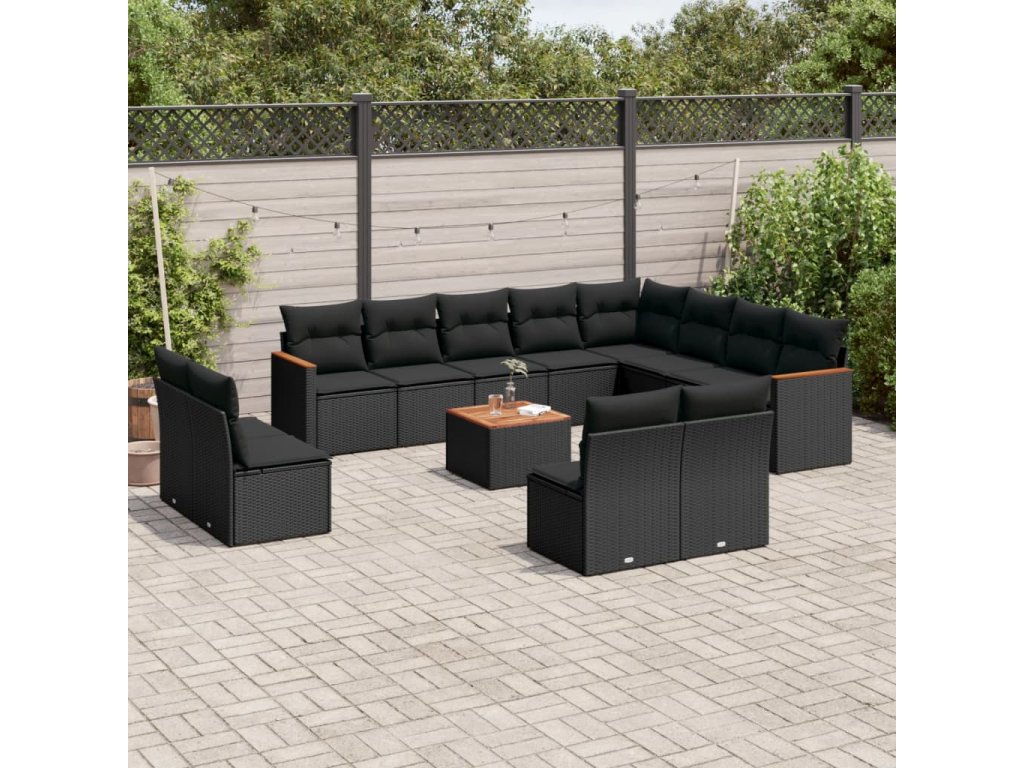 13dílný zahradní sedací souprava s poduškami černý polyratan 3226475