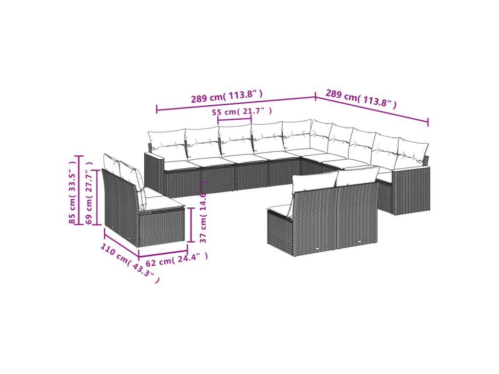 13dílný zahradní sedací souprava s poduškami černý polyratan 3226482